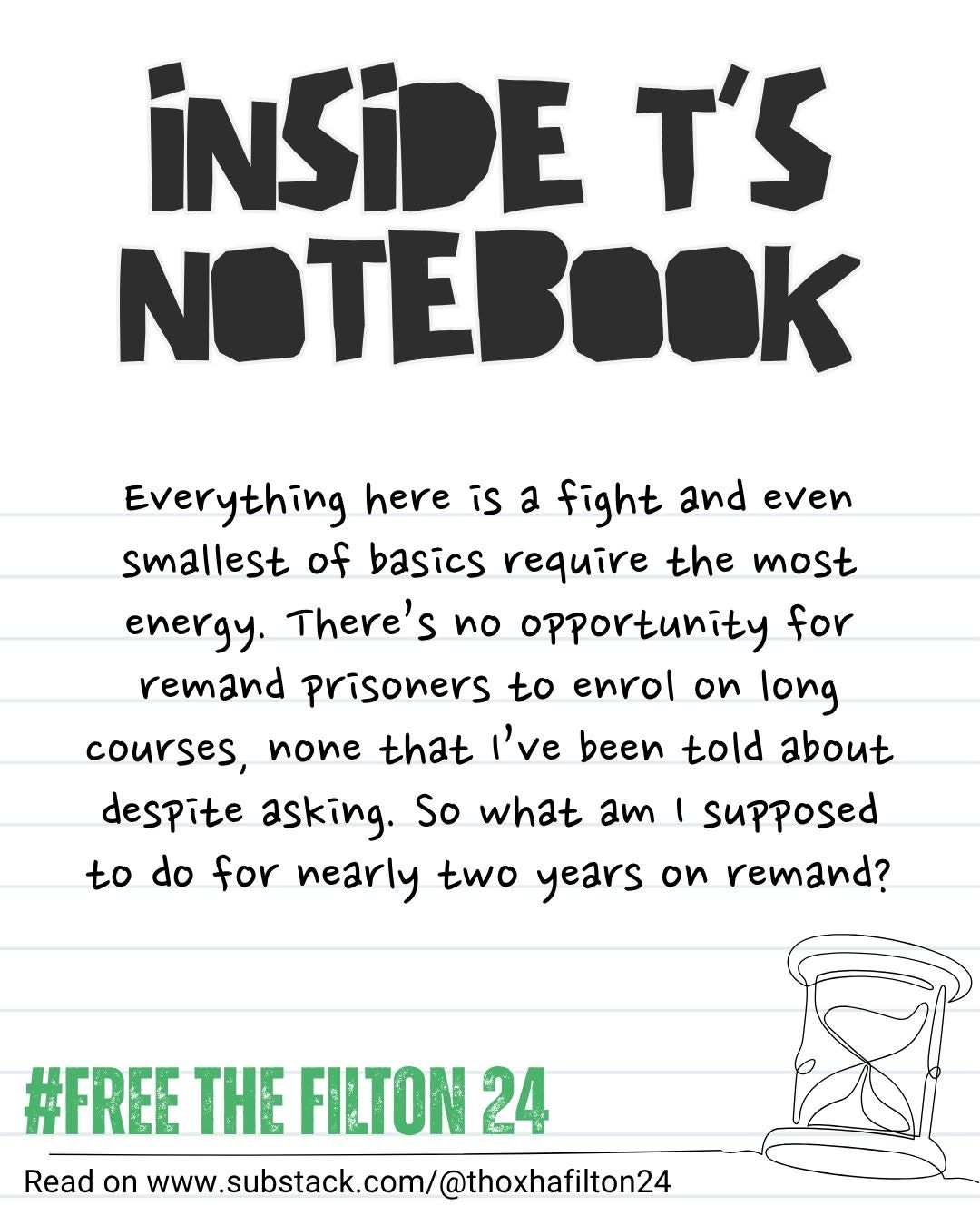 T is one of the Filton24, arrested in November 2024 in alleged connection to the action. She was initially remanded to HMP Bronzefield but has since been moved to HMP Peterborough in July 2025. She shares her reflections of her 3 full months in prison.